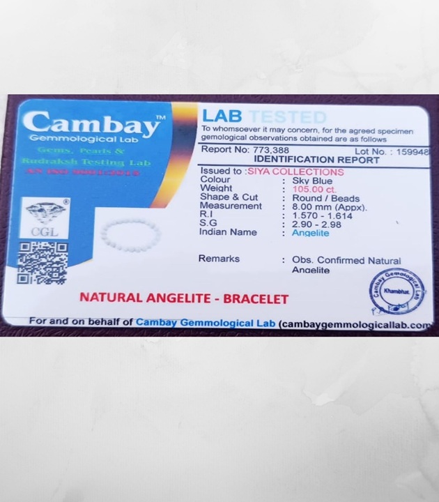 एंजेलाइट ब्रेसलेट शांति, सुकून और इमोशनल लाता है। इसे “एंजल्स का पत्थर” भी कहा जाता है, यह आध्यात्मिक जागरूकता, सहज ज्ञान और बातचीत को बढ़ाता है। इसे पहनने से तनाव कम करने, दया बढ़ाने और एनर्जी को बैलेंस करने में मदद मिलती है। यह उन लोगों के लिए बहुत अच्छा है जो रोज़मर्रा की ज़िंदगी में तालमेल, खुद को ज़ाहिर करना और ऊपरवाले के मार्गदर्शन से जुड़ना चाहते हैं।