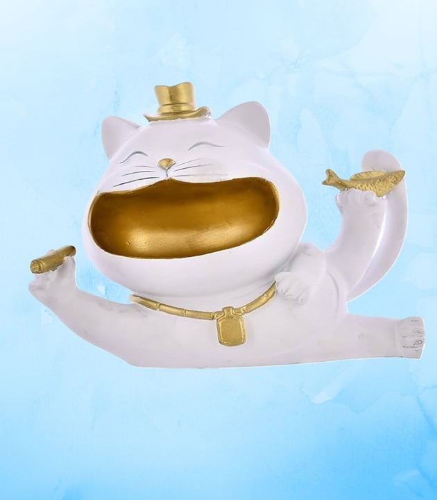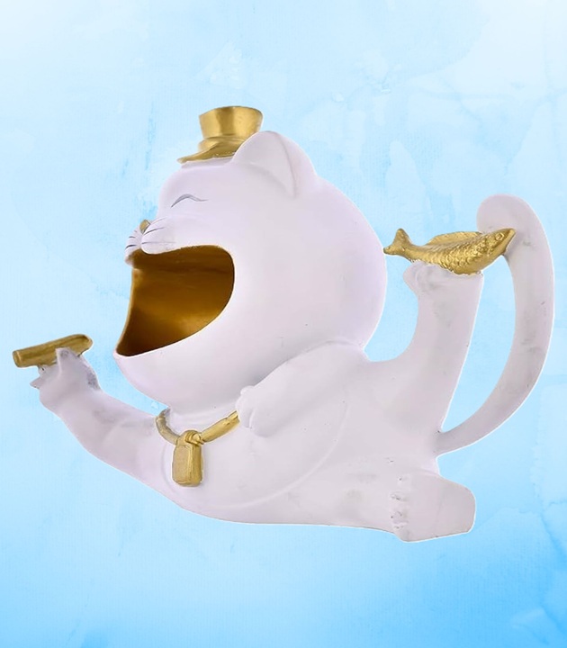 एक स्टाइलिश टोपी वाली प्यारी बिल्ली जो स्मार्ट स्टोरेज का भी काम करती है, आपके घर की सजावट में आकर्षण, मज़ा और एक छिपा हुआ उपयोगी टच जोड़ती है।