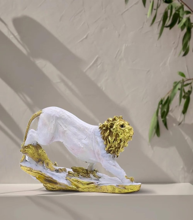 हाथ से बनी किंग लायन की मूर्ति, शानदार सफ़ेद एंटीक फ़िनिश के साथ। यह ताकत और राजसीपन का प्रतीक है, जो घर की सजावट, ऑफिस और गिफ़्टिंग के लिए एकदम सही है, जिसमें हमेशा रहने वाला कलात्मक आकर्षण है।