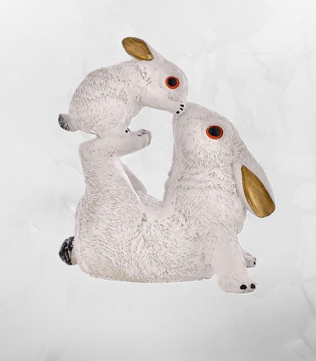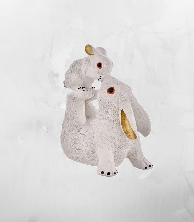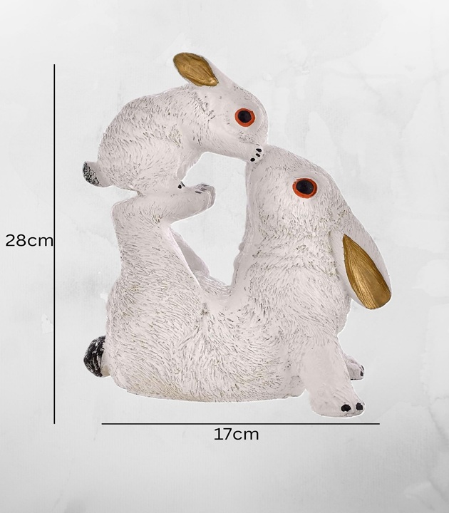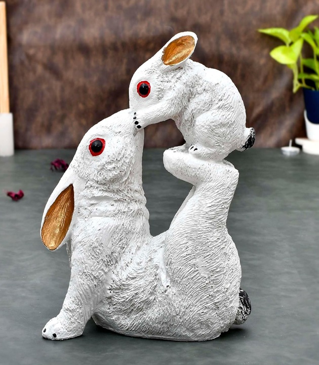 Beautiful hand-crafted rabbit with small child statue, symbolizing love and innocence. Perfect home décor showpiece for living room, adding warmth, charm and a peaceful artistic touch.